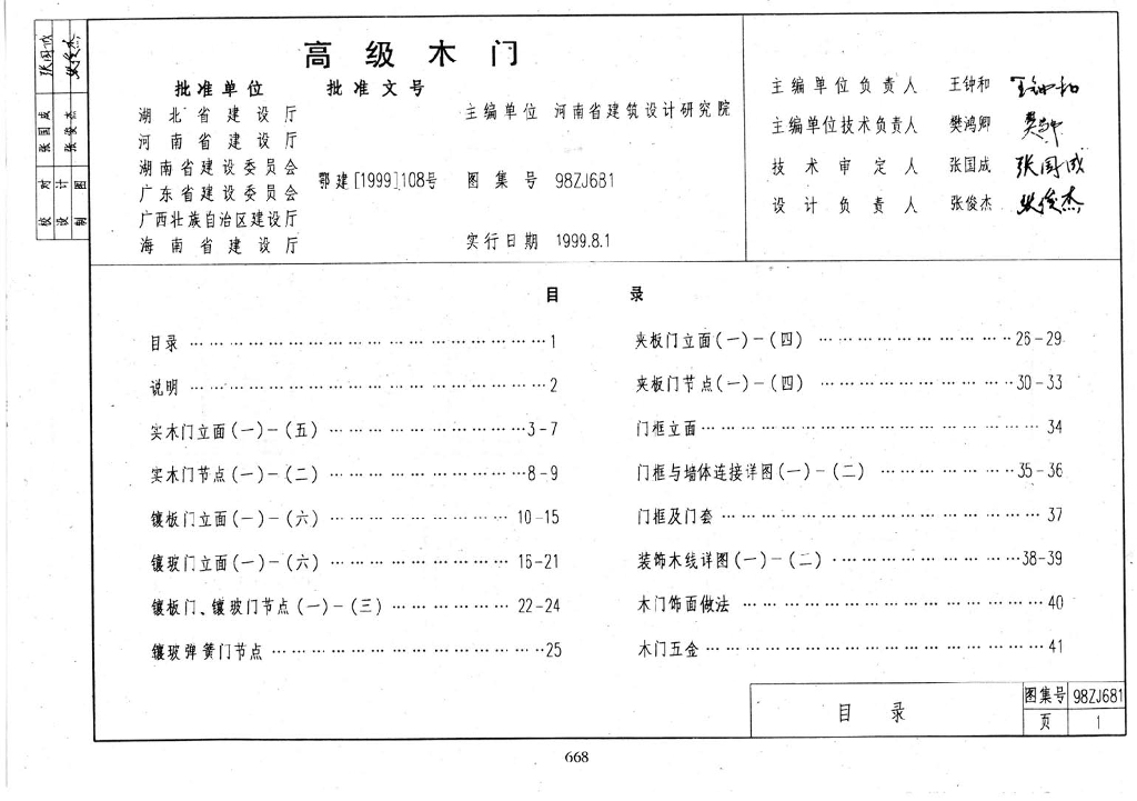 98ZJ681 高级木门图集(中南标准)