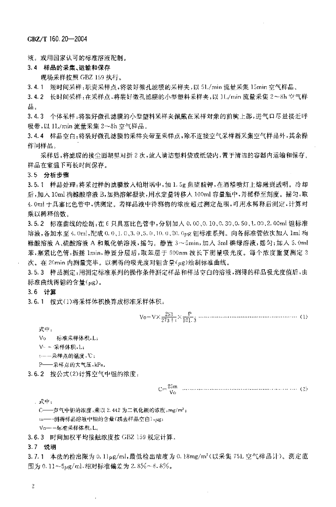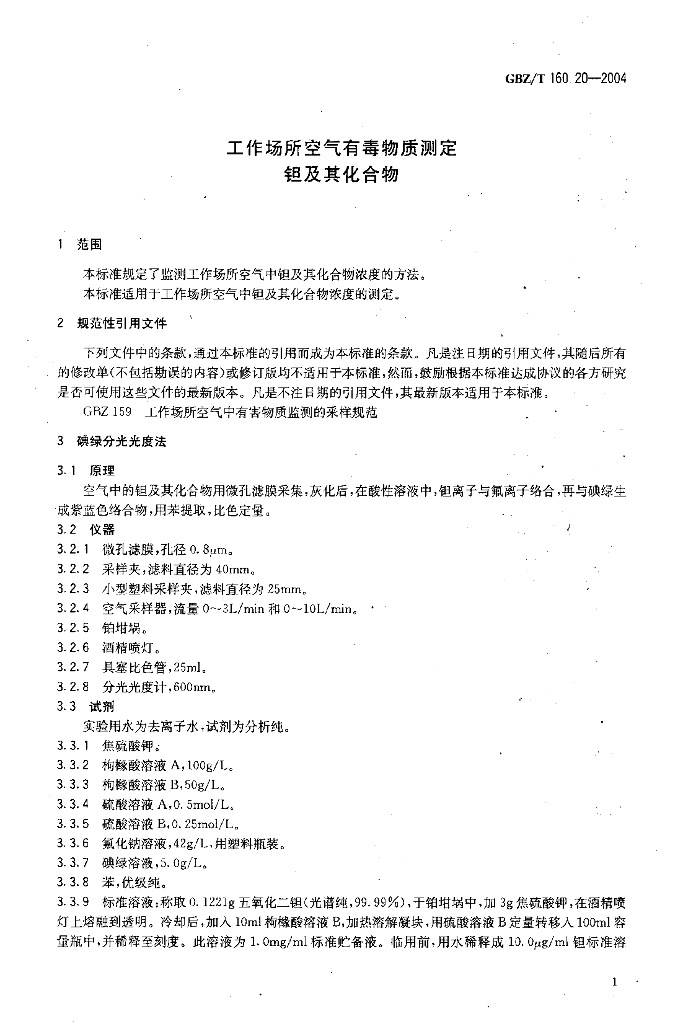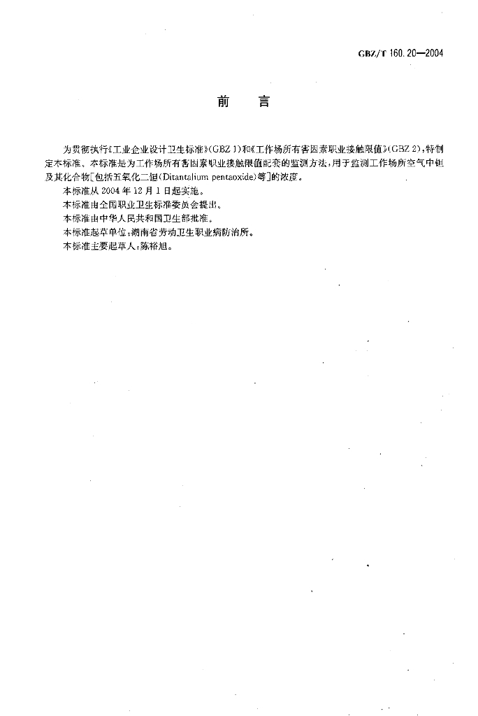 GBZ/T 160.20-2004 工作场所空气有毒物质测定 钽及其化合物