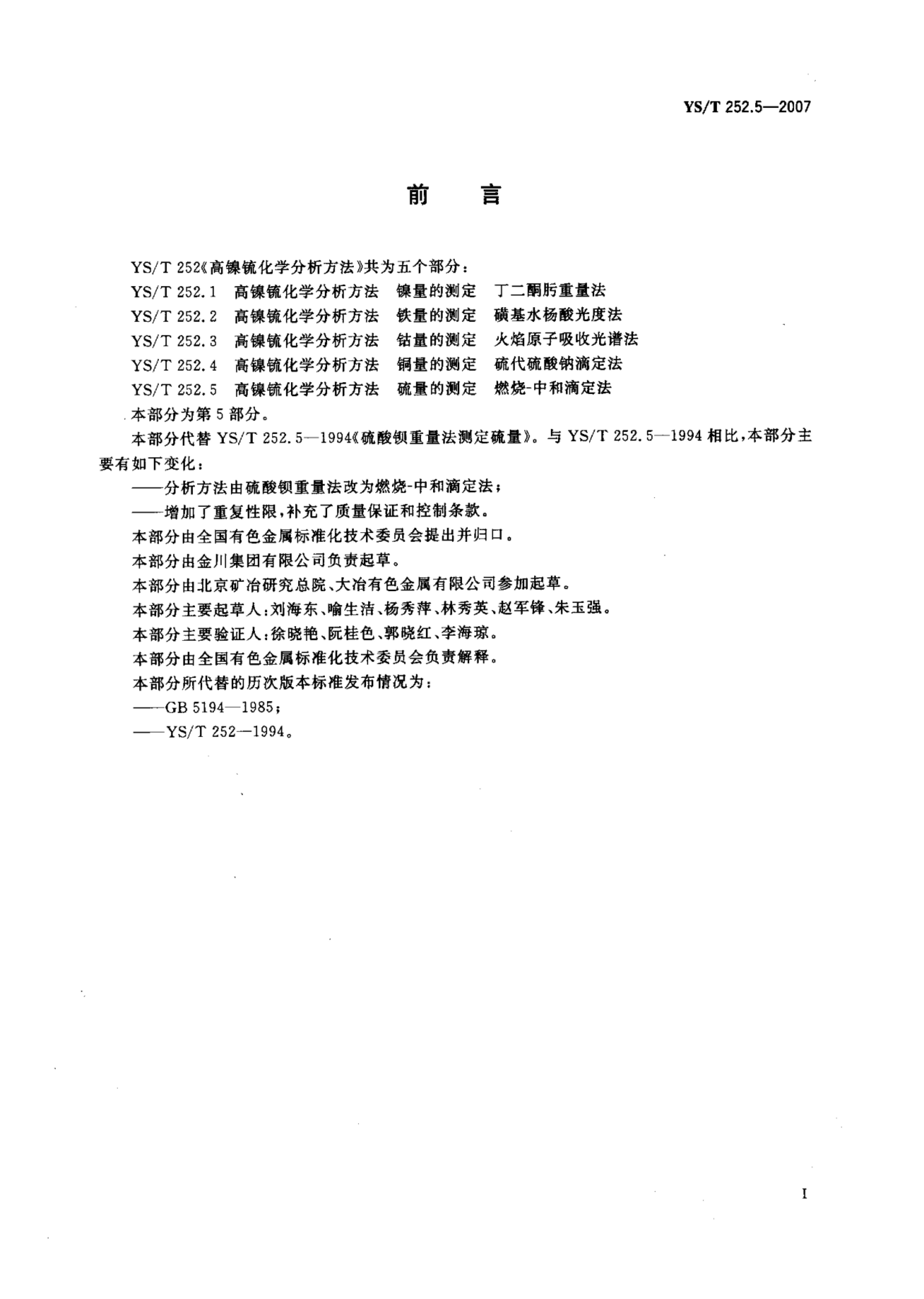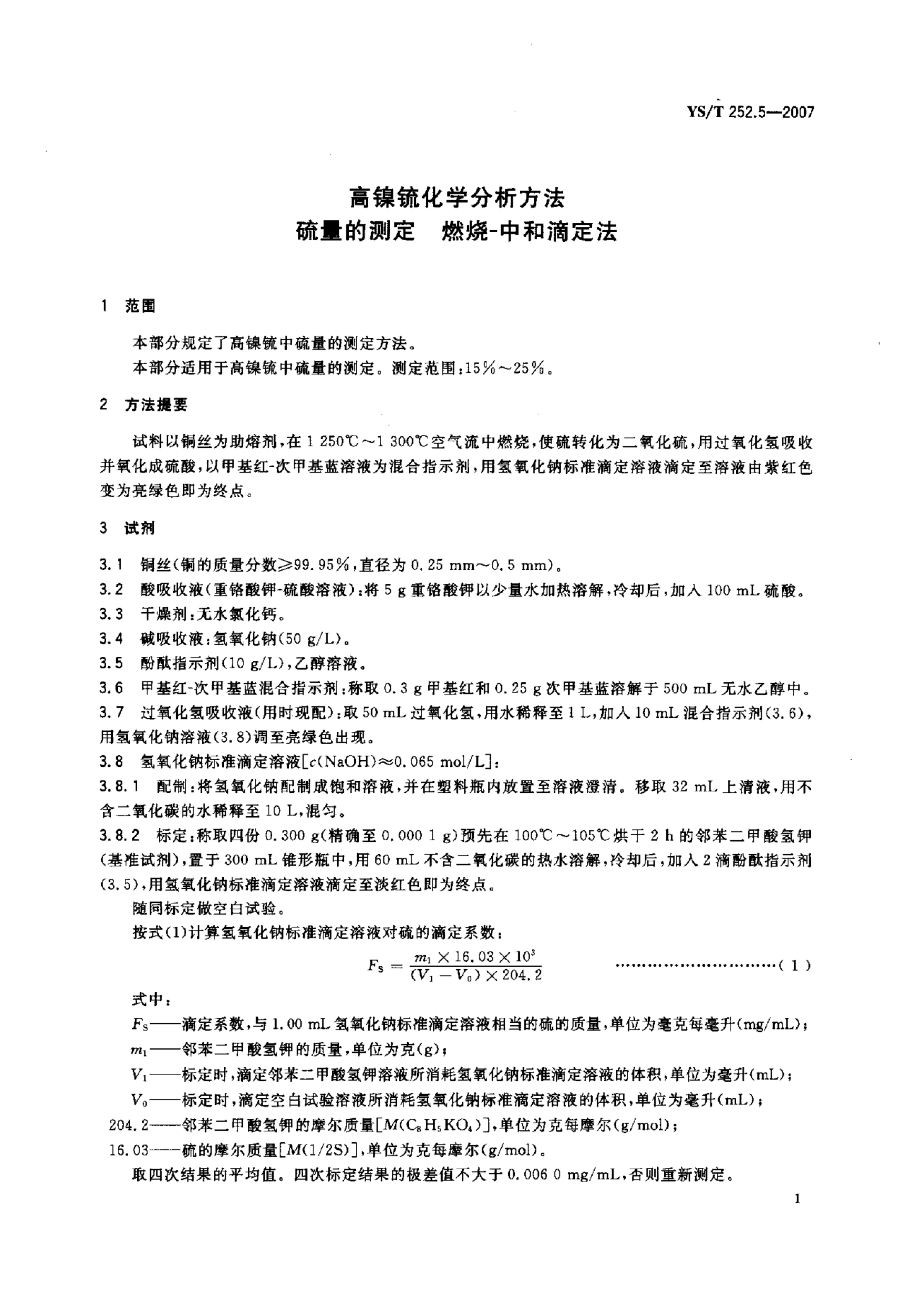 YS/T 252.5-2007 高镍锍化学分析方法硫量的测定燃烧-中和滴定法