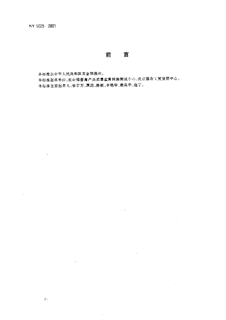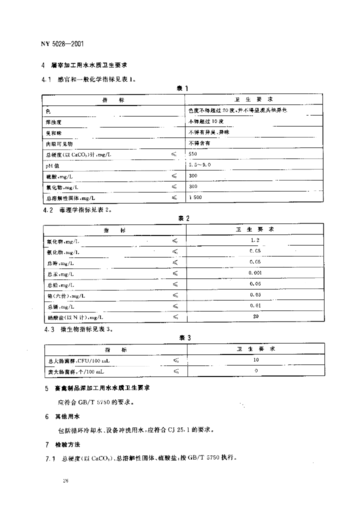 NY 5028-2001 无公害食品 畜禽产品加工用水水质