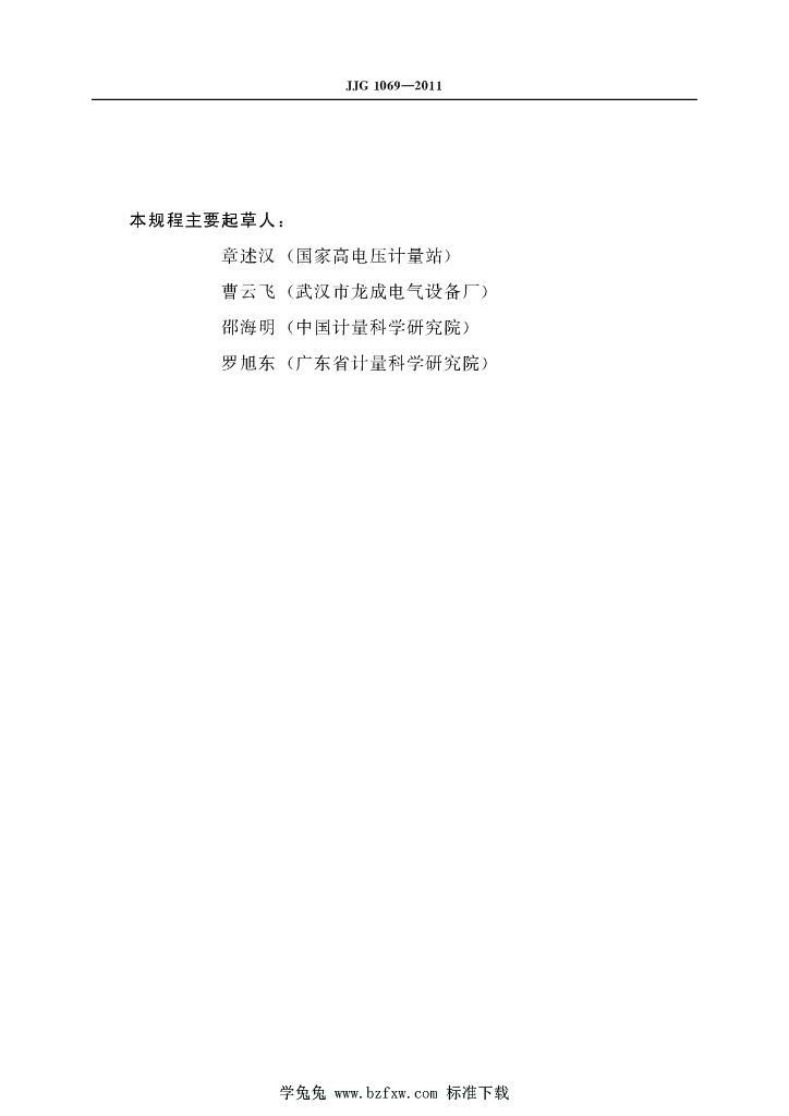章述汉(国家高电压计量站)、曹云飞(武汉市龙成电气设备厂)、邵海明(中国计量科学研究院)、罗旭东(广东省计量科学研究院)