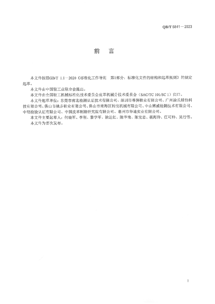 东莞市南北检测认证技术有限公司、深圳市尊狮鞋业有限公司、广州涂氏精怡科技有限公司、佛山市驰步鞋业有限公司、佛山市南海区钧宝机械有限公司、中山博威检测技术有限公司、中轻检验认证有限公司、中国皮革制鞋研究院有限公司、惠州市华迪实业有限公司