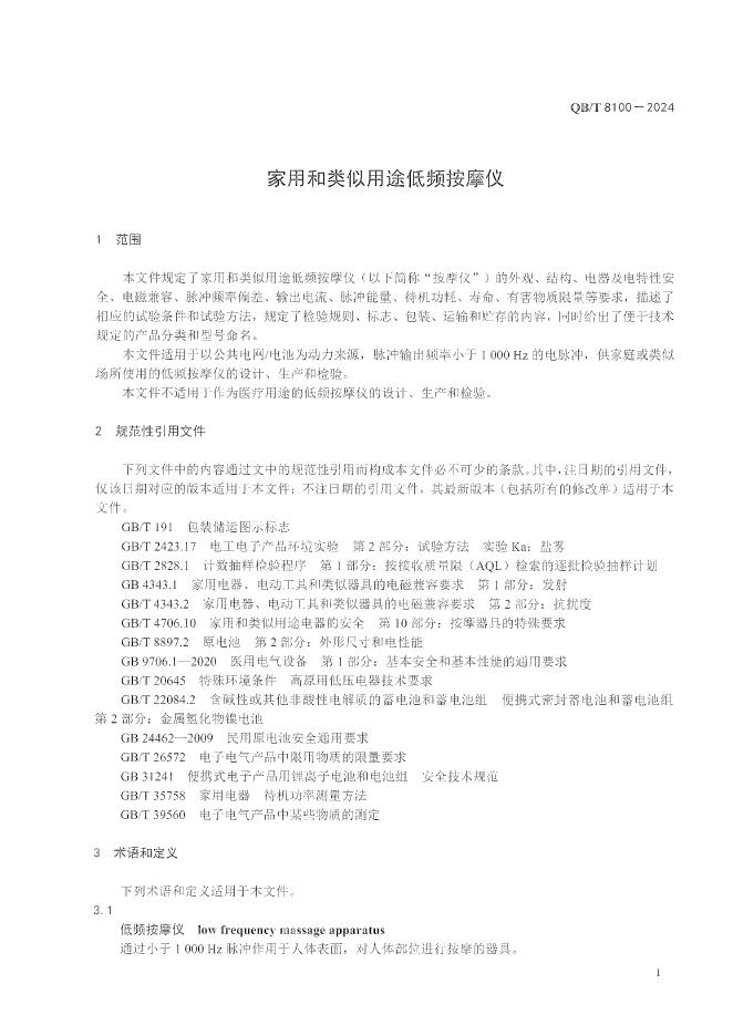 QB/T 8100-2024 家用和类似用途低频按摩仪
