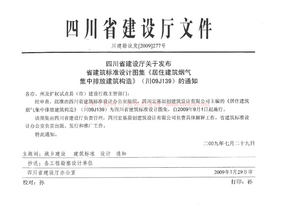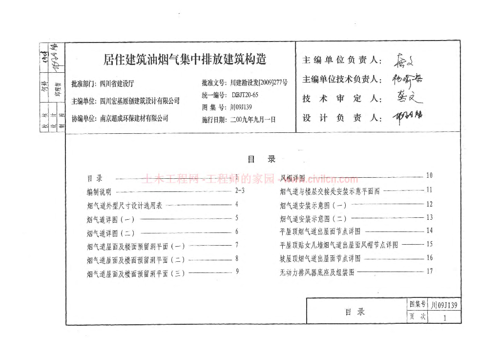 川09J139 居住建筑油烟气集中排放建筑构造图集
