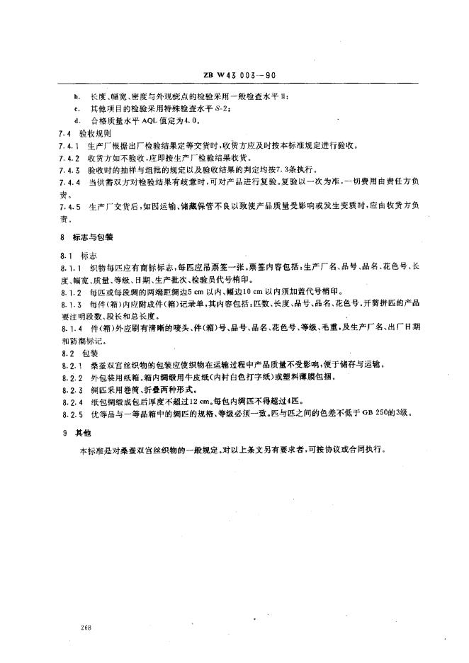 ZBW 43003-1990 桑蚕双宫丝织物