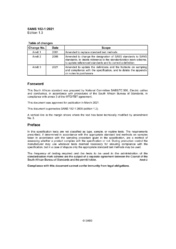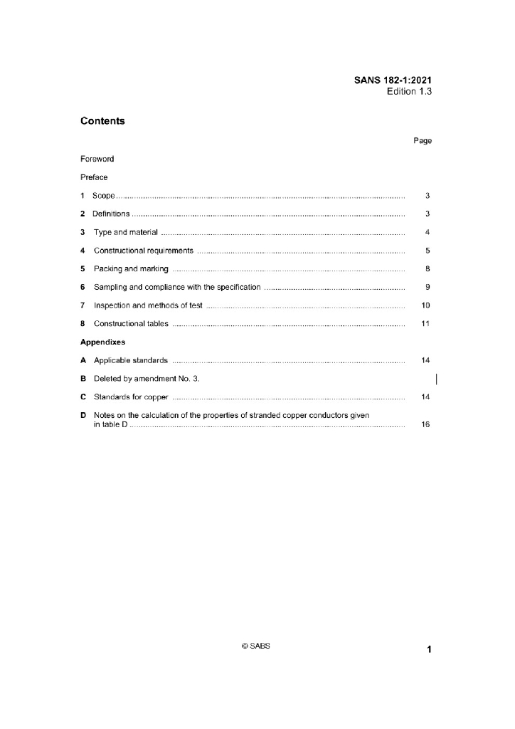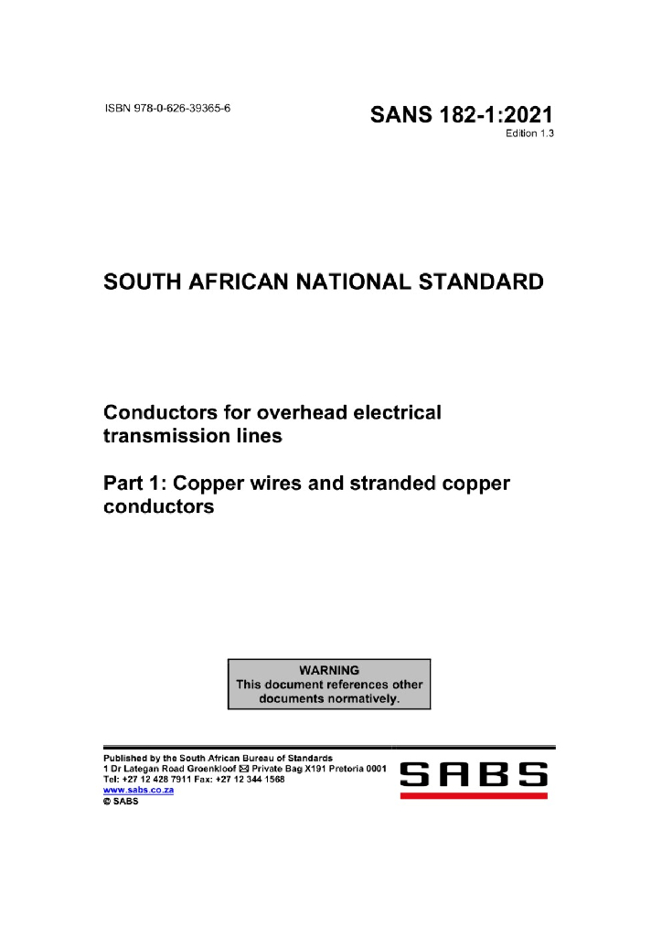 SANS 182-1:2008 架空电力传输线用导体第1部分:铜丝及绞合铜导体