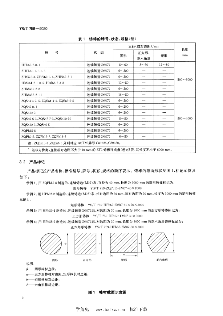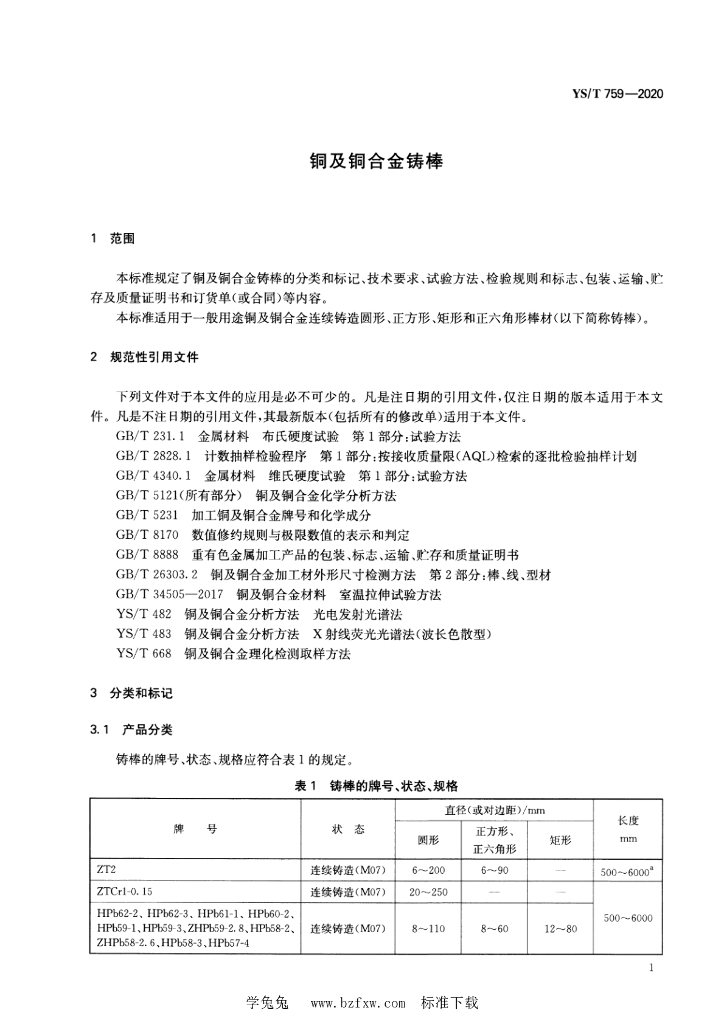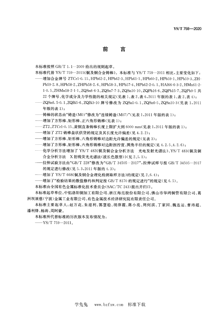 YS/T 759-2020 铜及铜合金铸棒