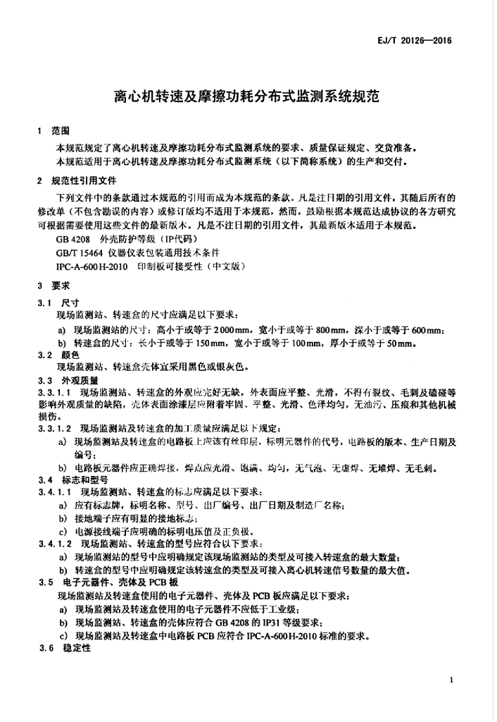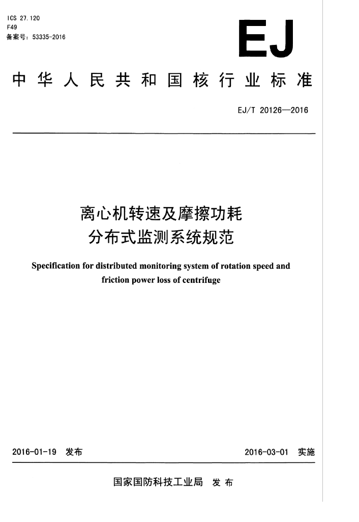 EJ/T 20126-2016 离心机转速及摩擦功耗分布式监测系统规范