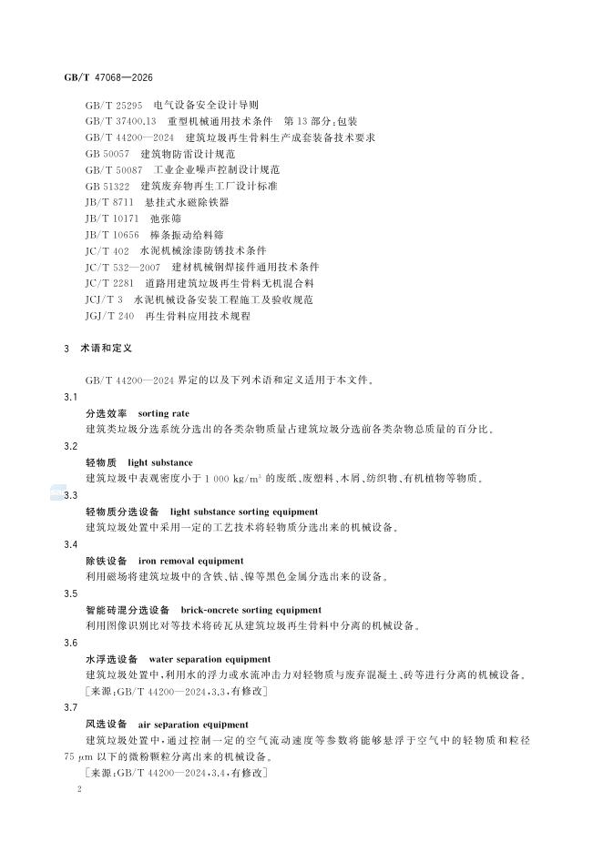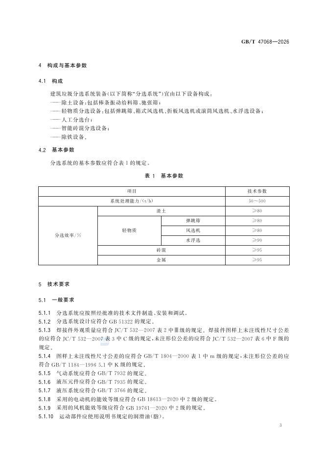 GB/T 47068-2026 建筑垃圾分选系统装备技术要求