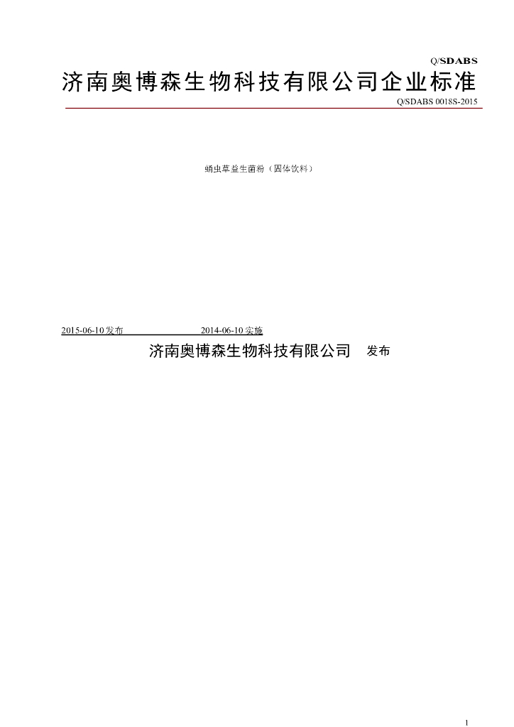 Q/SDABS 0018S-2015 济南奥博森生物科技有限公司 蛹虫草益生菌粉(固体饮料)