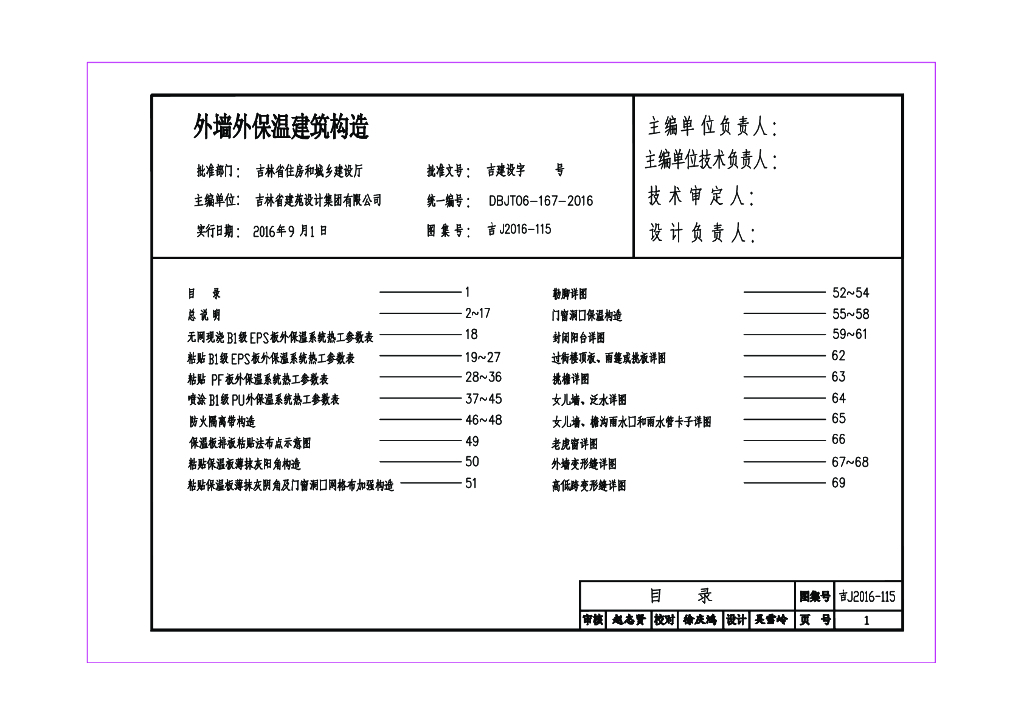 吉J2016-115 外墙外保温建筑构造图集