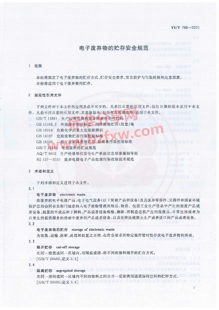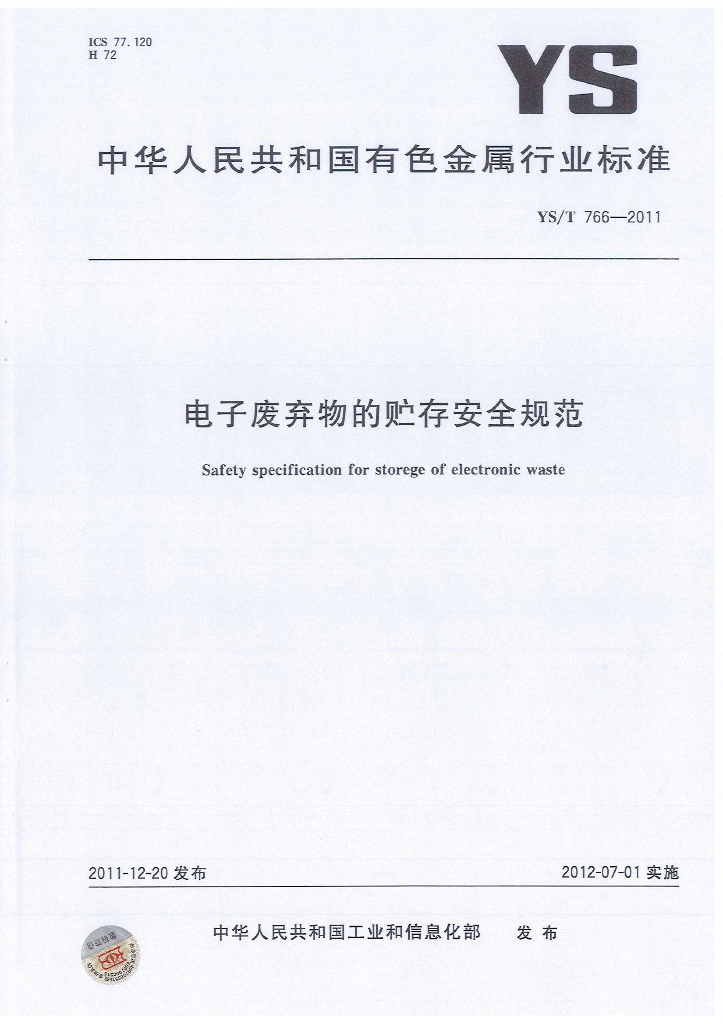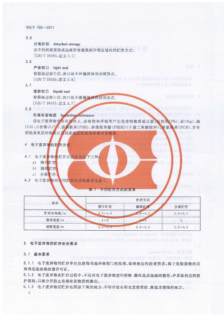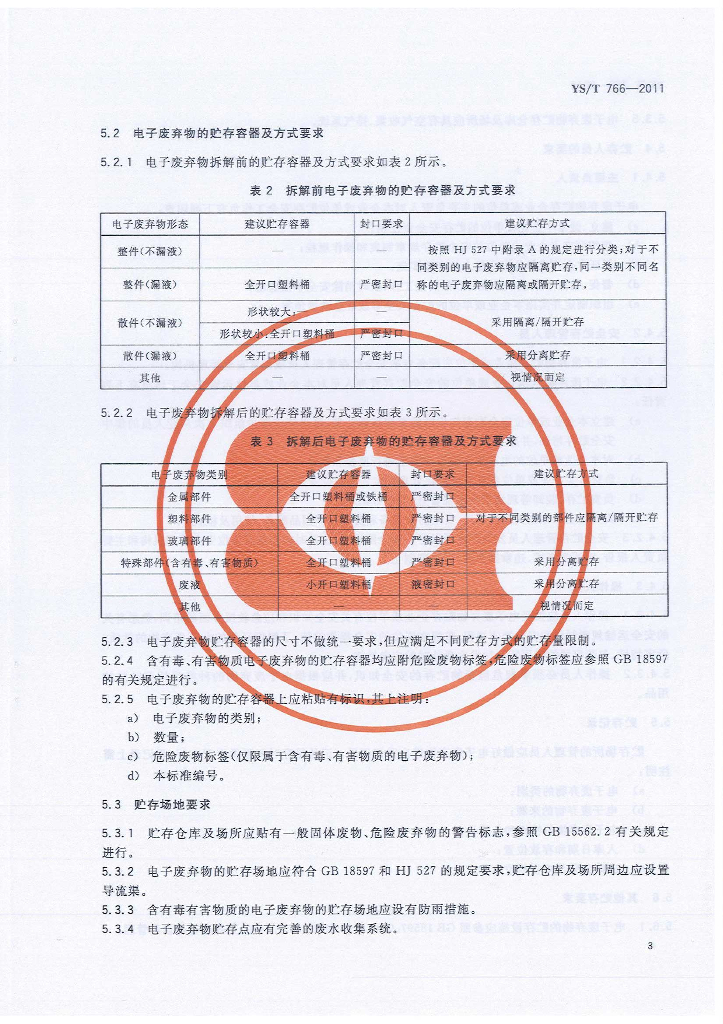 YS/T 766-2011 电子废弃物的贮存安全规范