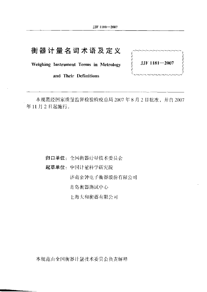 中国计量科学研究院、济南金钟电子衡器股份有限公司、青岛衡器测试中心、上海大和衡器有限公同