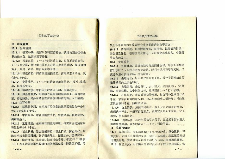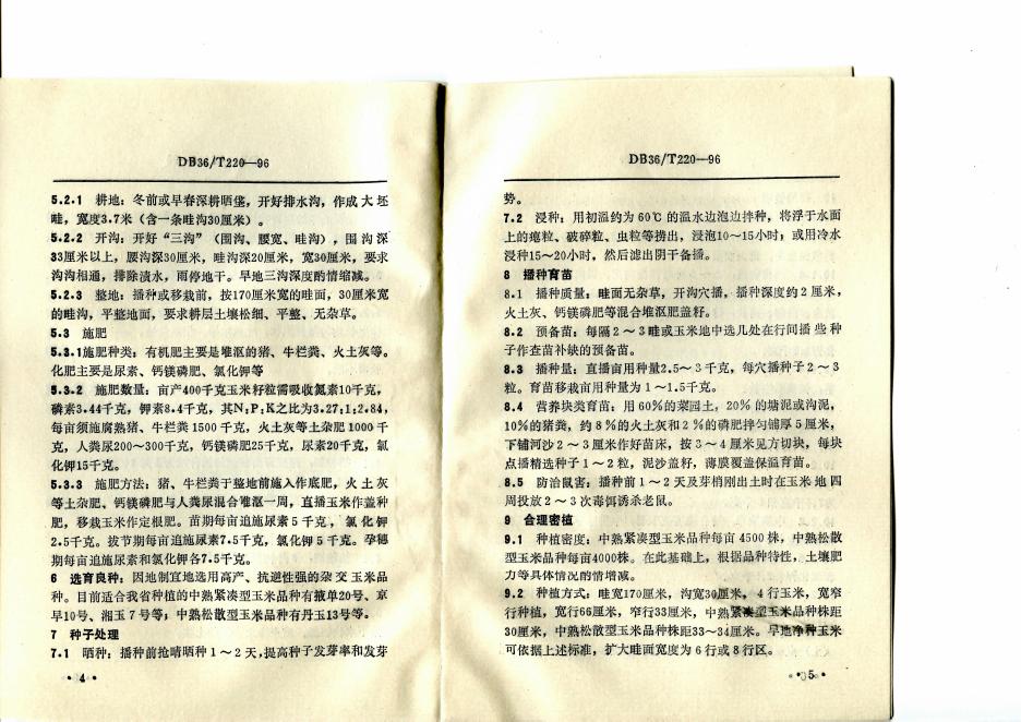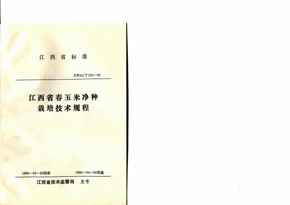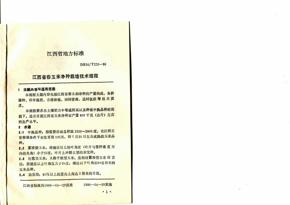 DB36/T 220-1996 江西省春玉米净种栽培技术规程