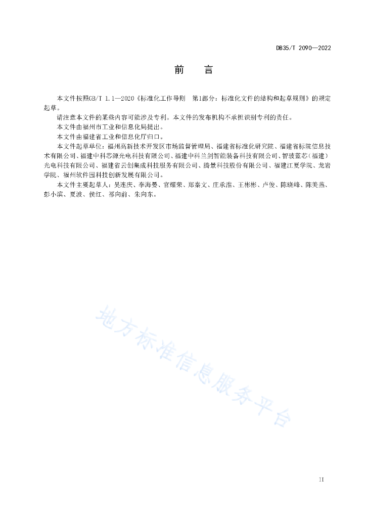 福州高新技术开发区市场监督管理局、福建省标准化研究院、福建省标院信息技术有限公司、福建中科芯源光电科技有限公司、福建中科兰剑智能装备科技有限公司、智玻蓝芯(福建)光电科技有限公司、福建省云创集成科技服务有限公司、腾景科技股份有限公司、福建江夏学院、龙岩学院、福州软件园科技创新发展有限公司