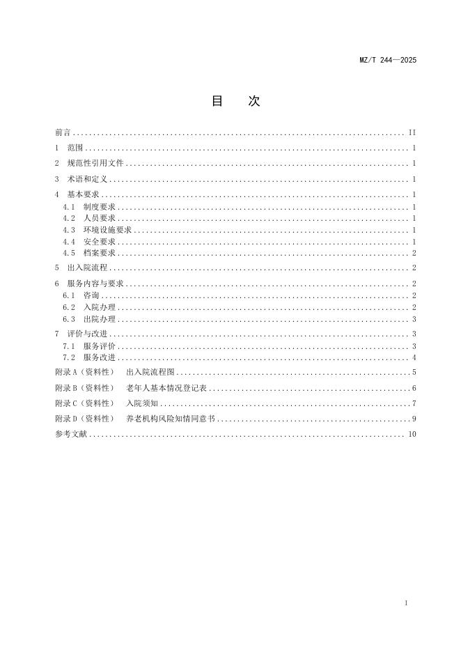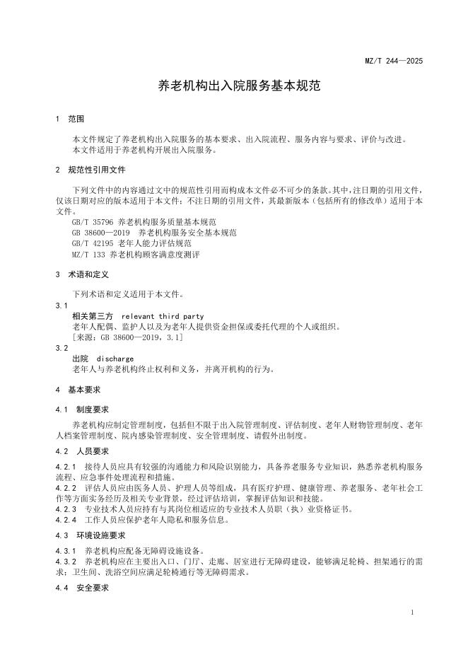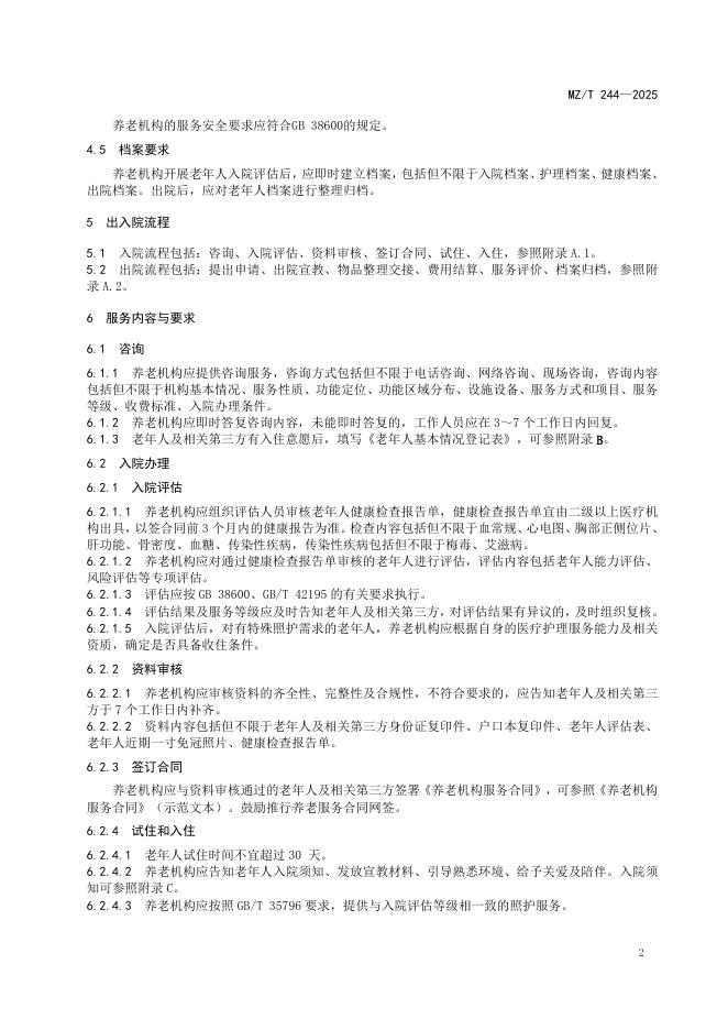 MZ/T 244-2025 养老机构出入院服务基本规范