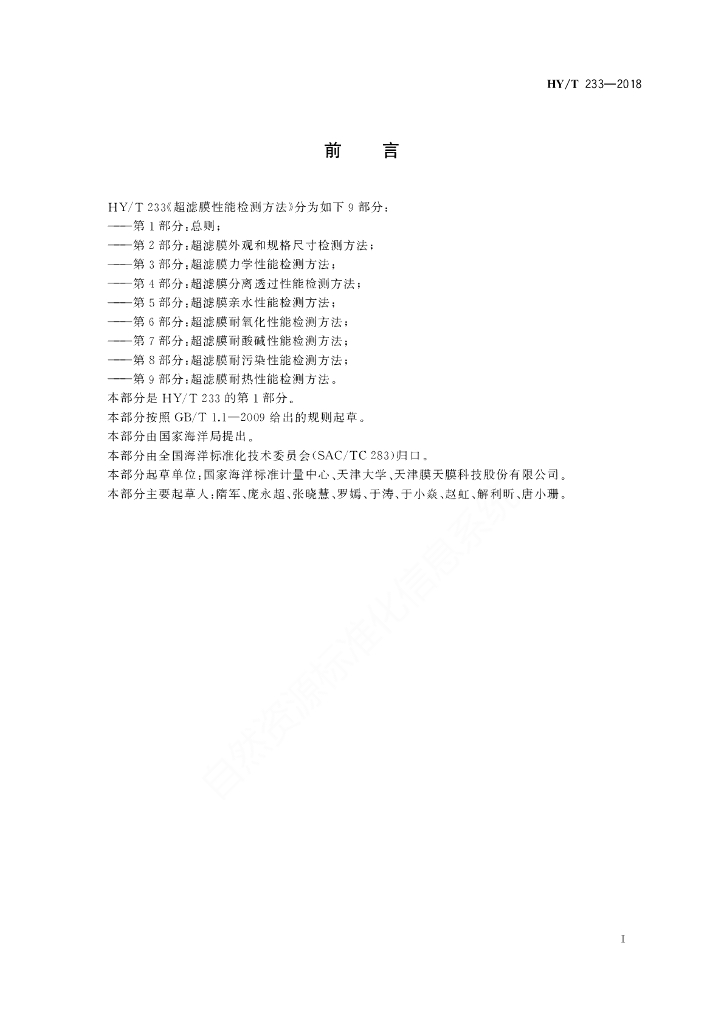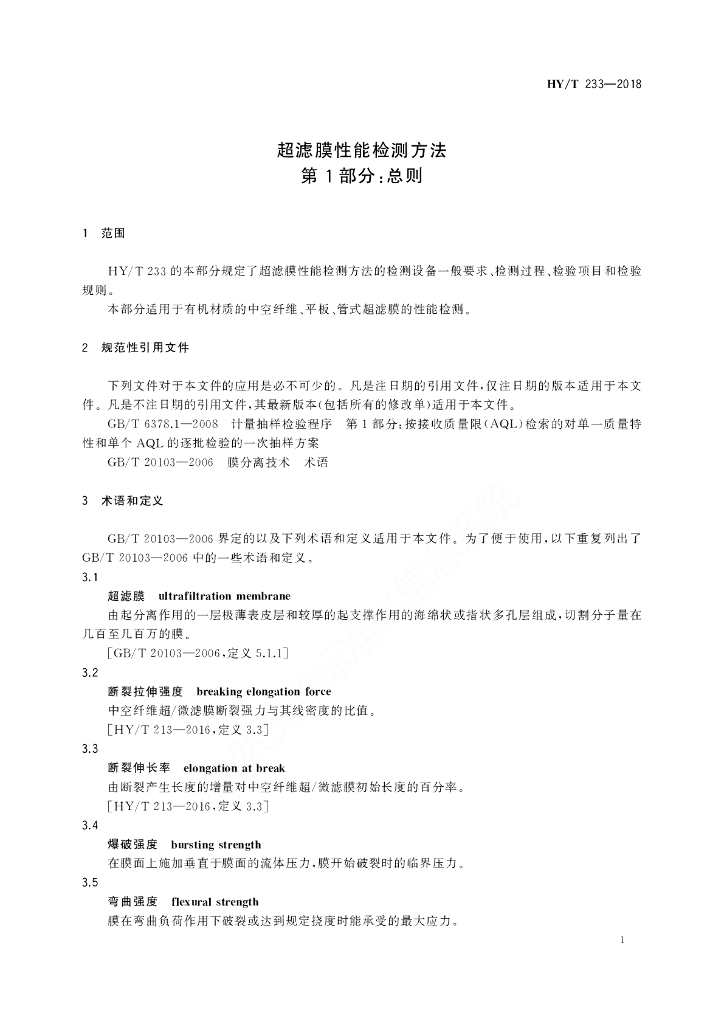 HY/T 233-2018 超滤膜性能检测方法 第1部分:总则