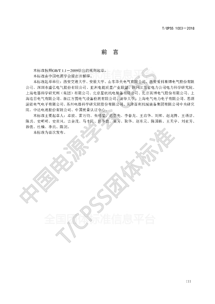 西安交通大学、安徽大学、山东华天电气有限公司、西安爱科赛博电气股份有限公司、深圳市盛弘电气股份有限公司、亚洲电能质量产业联盟、国网江苏省电力公司电力科学研究院、上海电器科学研究所(集团)有限公司、北京星航机电装备有限公司、北京英博电气股份有限公司、上海追日电气有限公司、浙江方圆电气设备检测有限公司、清华大学、上海电气电力电子有限公司、思源清能电气电子有限公司、苏州电器科学研究院股份有限公司、天津百利机械装备集团有限公司中央研究院、中达电通股份有限公司、中国质量认证中心