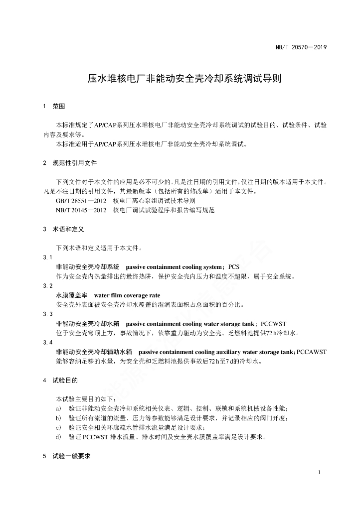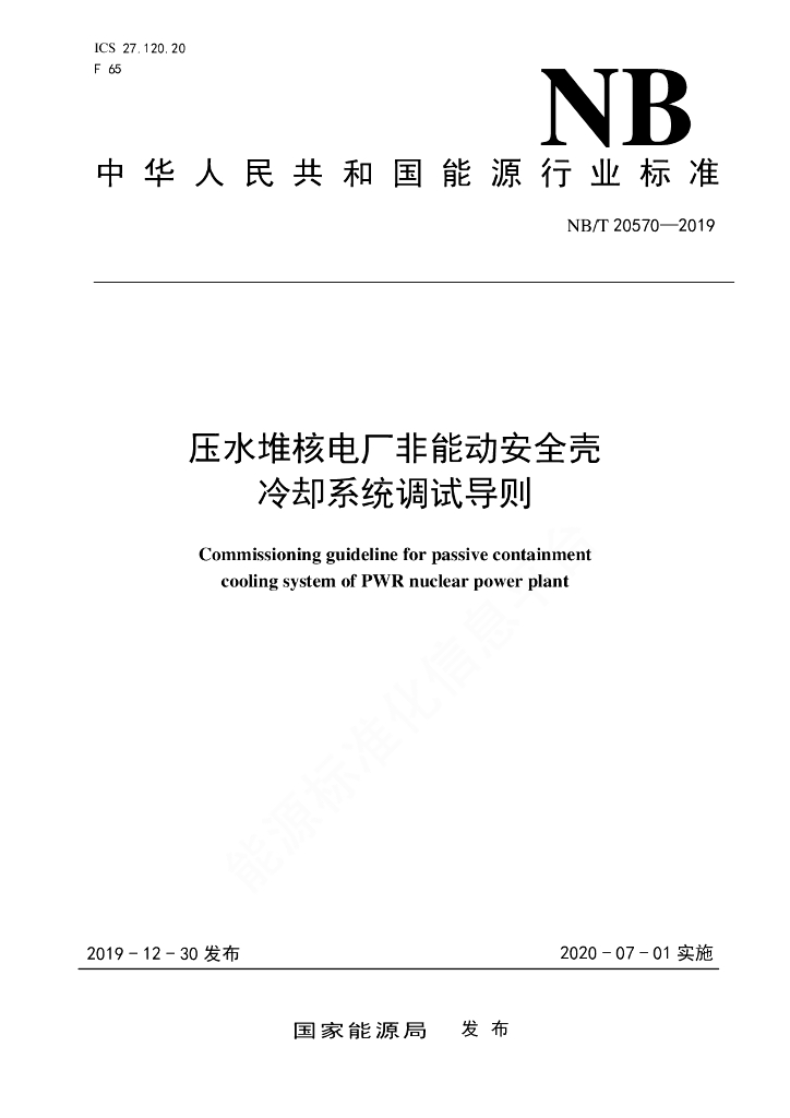 NB/T 20570-2019 压水堆核电厂非能动钢制安全壳冷却系统调试导则