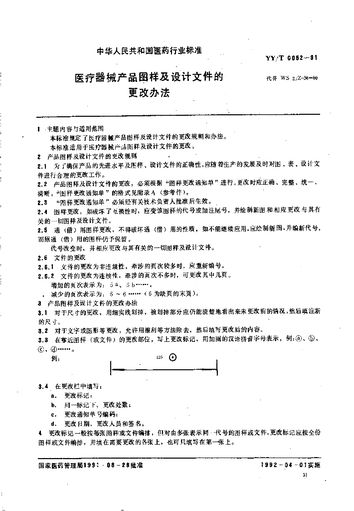 YY/T 0052-1991 医疗器械产品图样及设计文件的更改办法