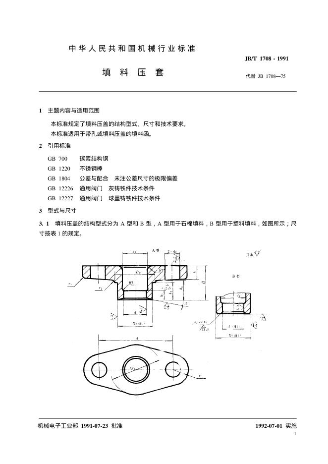 JB/T 1708-1991 填料压盖