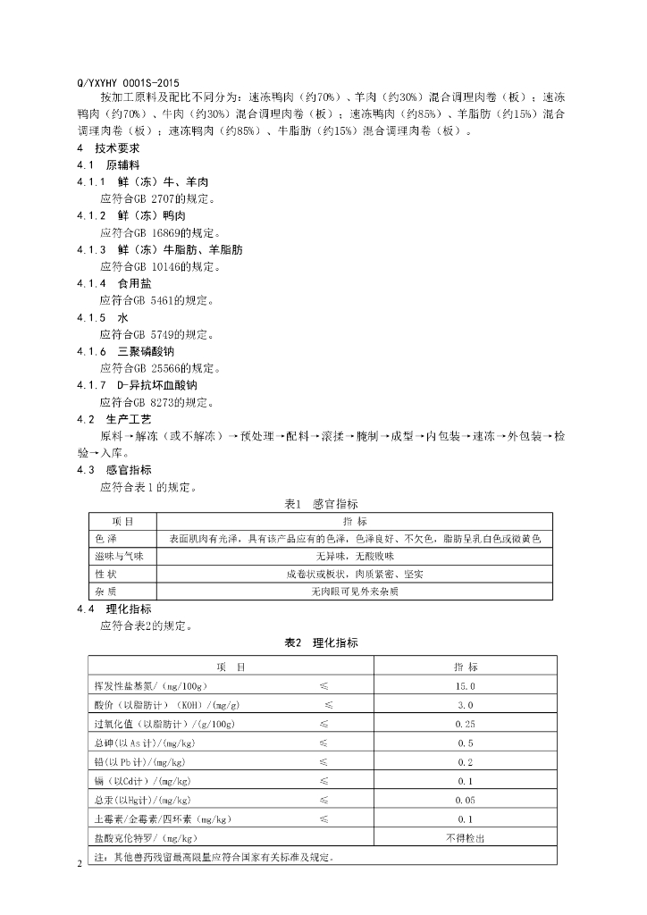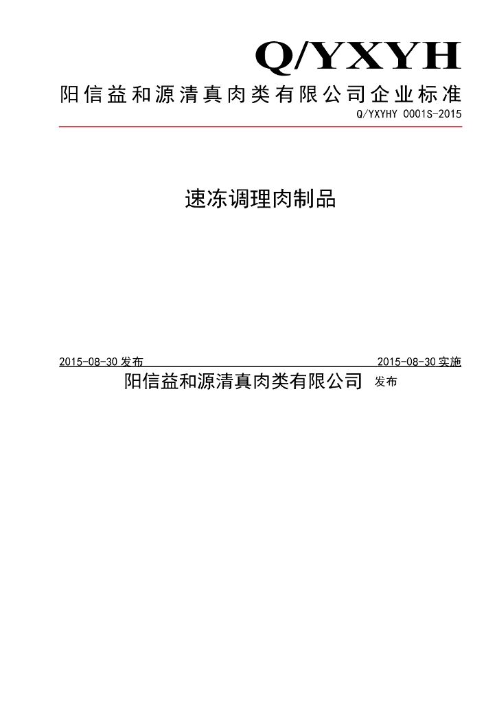 Q/YXYHY 0001S-2015 阳信益和源清真肉类有限公司 速冻调理肉制品