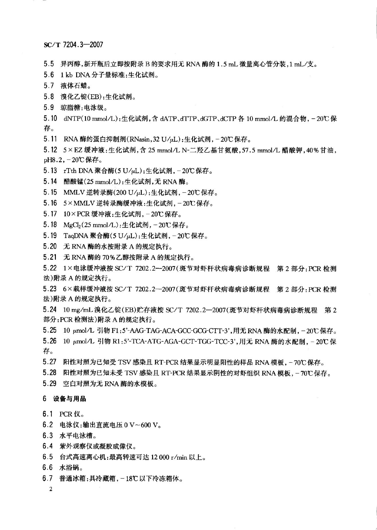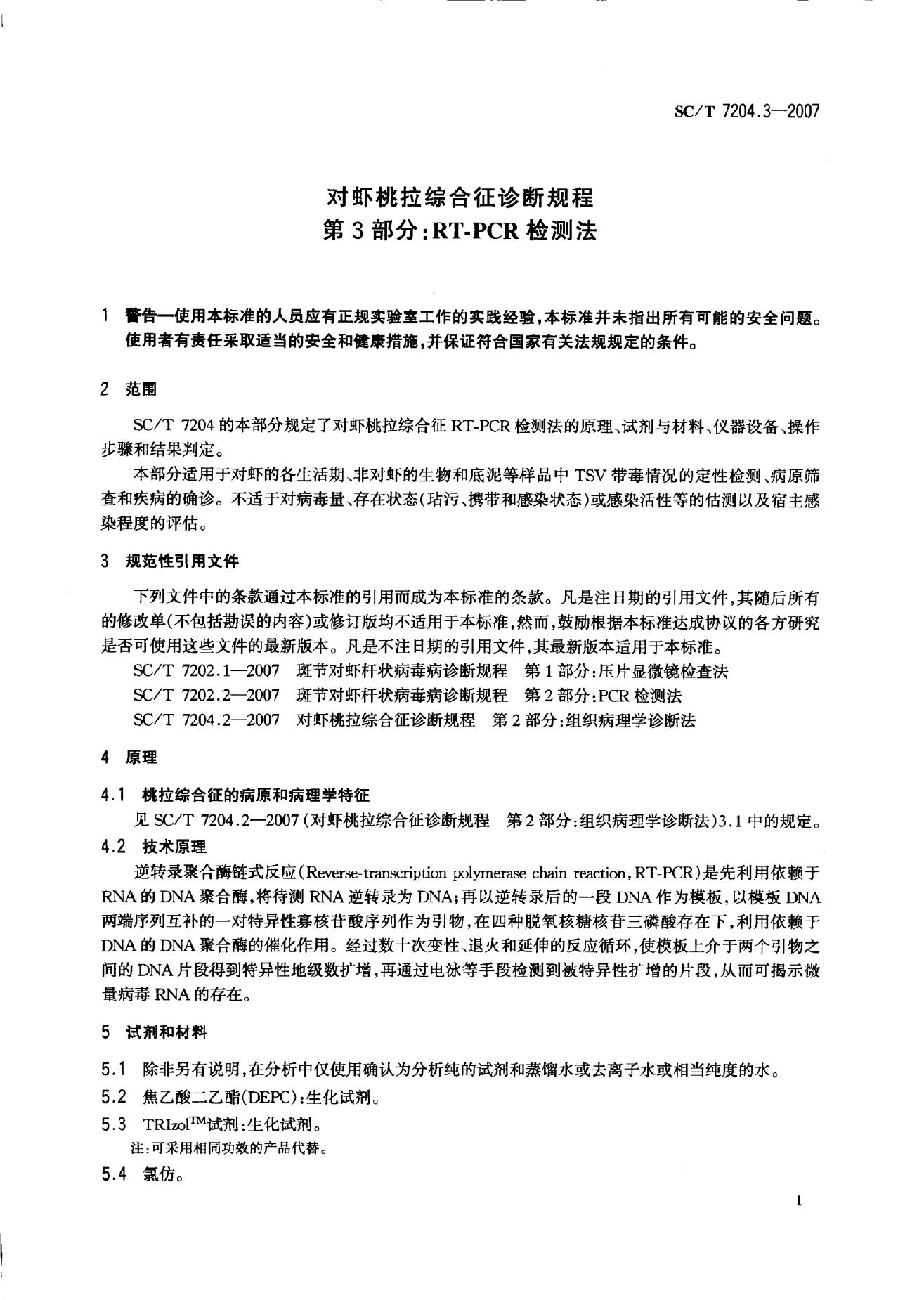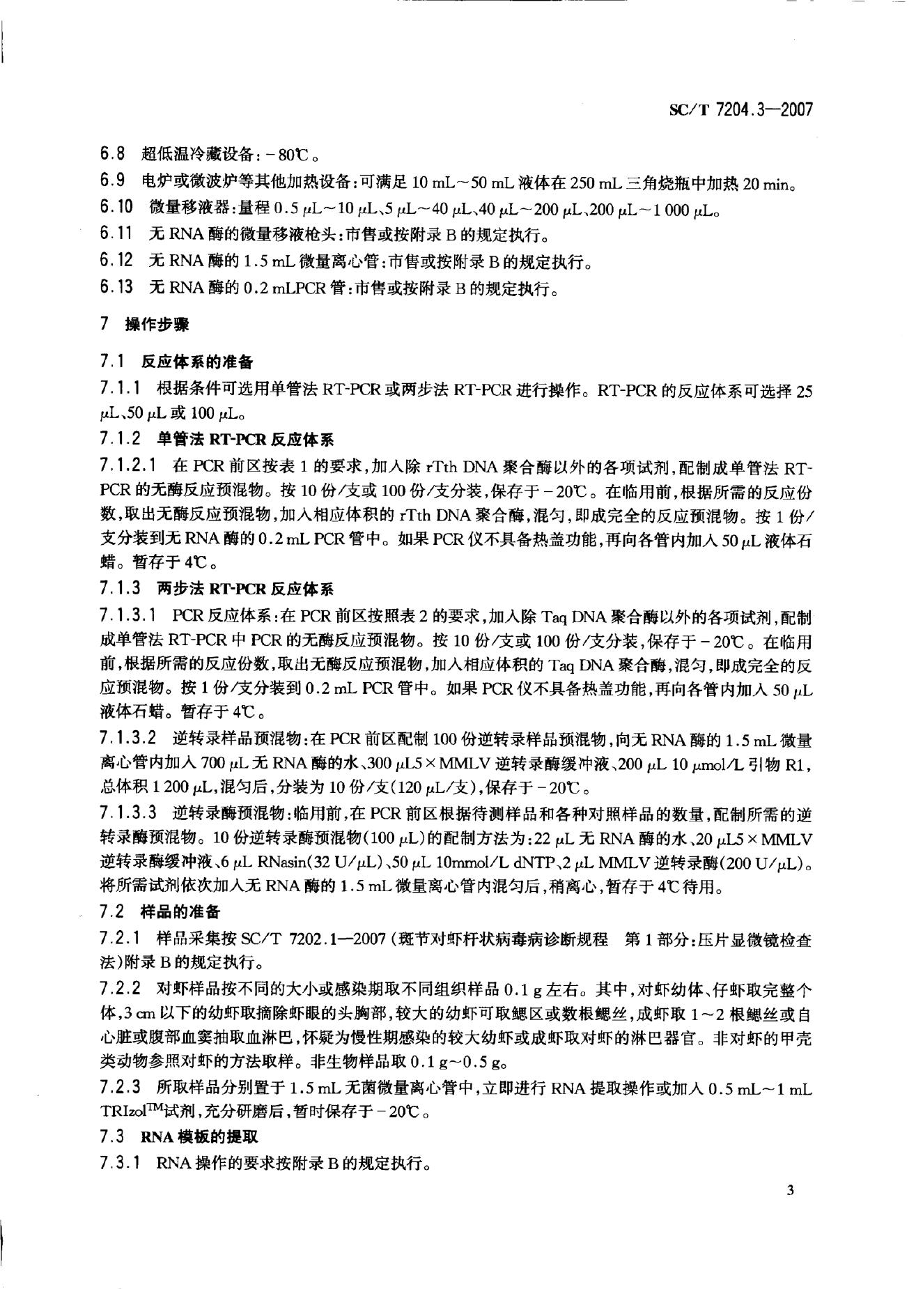 SC/T 7204.3-2007 对虾桃拉综合征诊断规程 第3部分:RT-PCR检测法