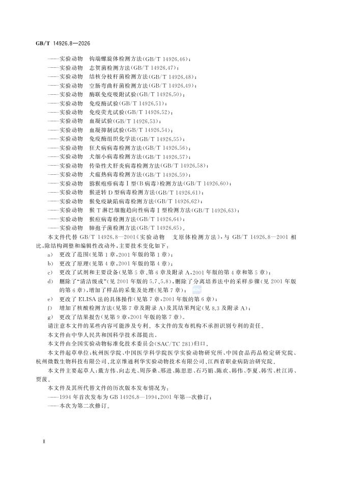 GB/T 14926.8-2026 实验动物 支原体检测方法