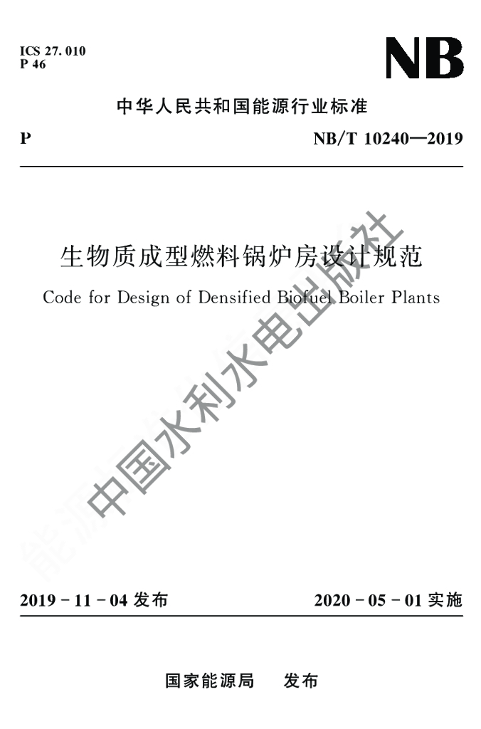 NB/T 10240-2019 生物质成型燃料锅炉房设计规范