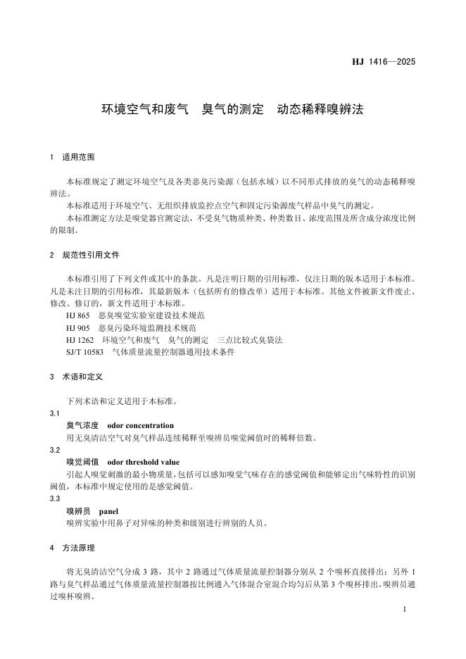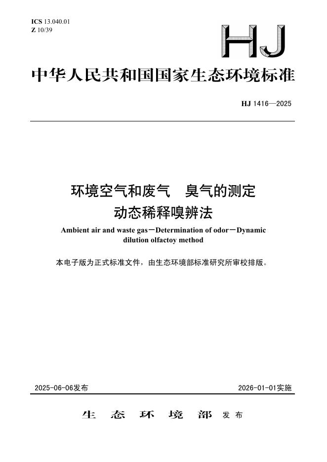 HJ 1416-2025 环境空气和废气 臭气的测定 动态稀释嗅辨法