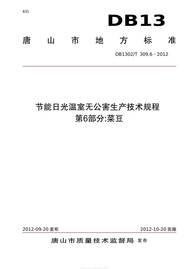 DB1302/T 309.6-2012 节能日光温室无公害生产技术规程 第6部分:菜豆