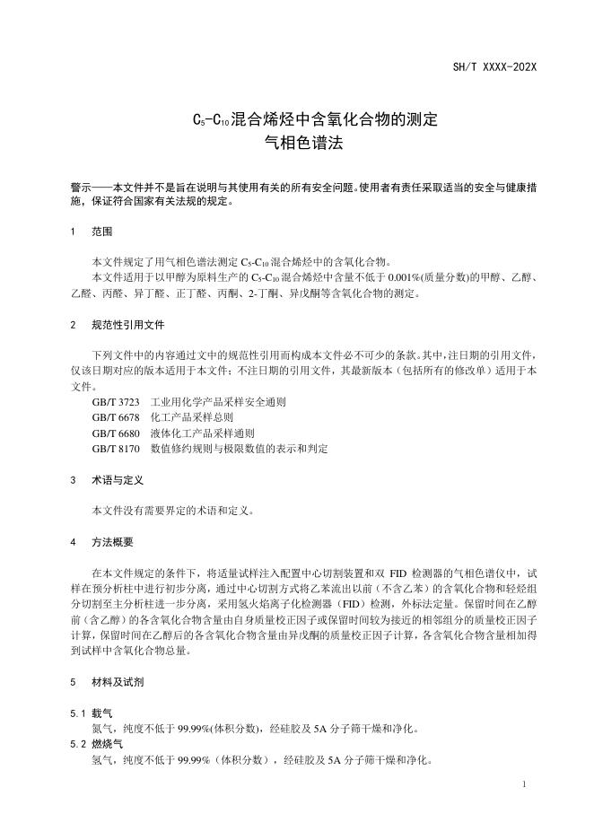 SH/T 1847-2025 C5-C10混合烯烃中含氧化合物的测定 气相色谱法