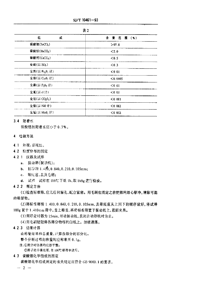SJ/T 10461-1993 电子玻璃用碳酸锶