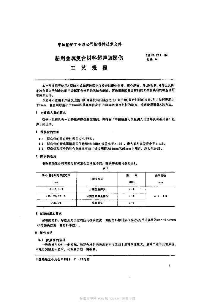 CB/Z 211-1984 船用金属复合材料超声波探伤工艺规程