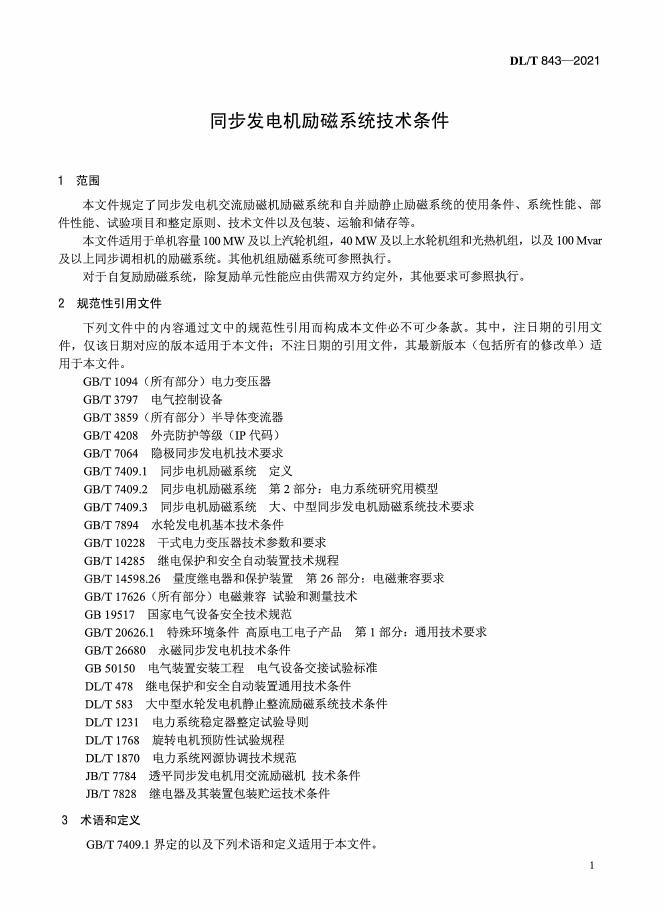DL/T 843-2021 同步发电机励磁系统技术条件