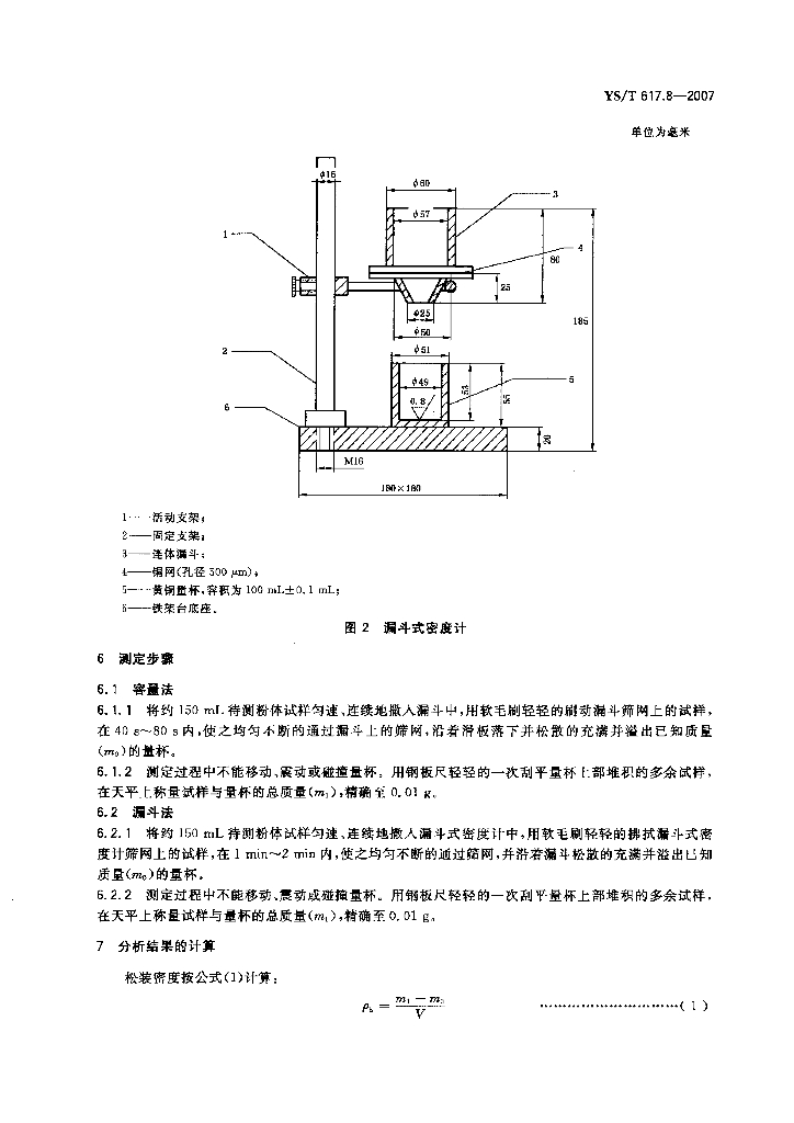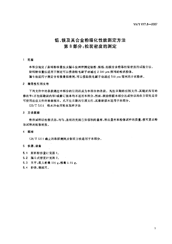 YS/T 617.8-2007 铝、镁及其合金粉理化性能测定方法 第8部分:松装密度的测定