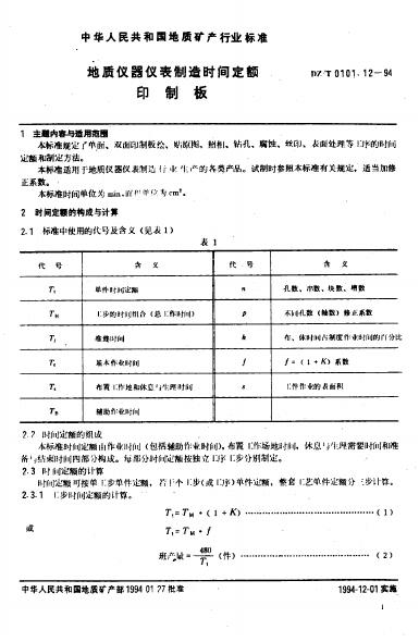 DZ/T 0101.12-1994 地质仪器仪表制造时间定额 印制板