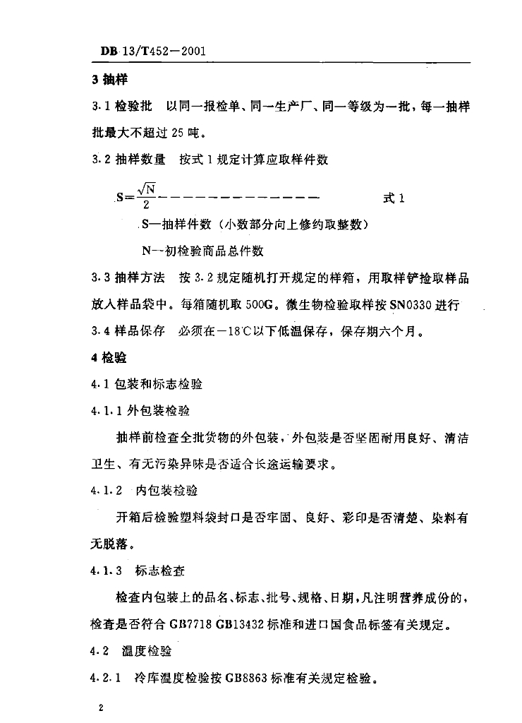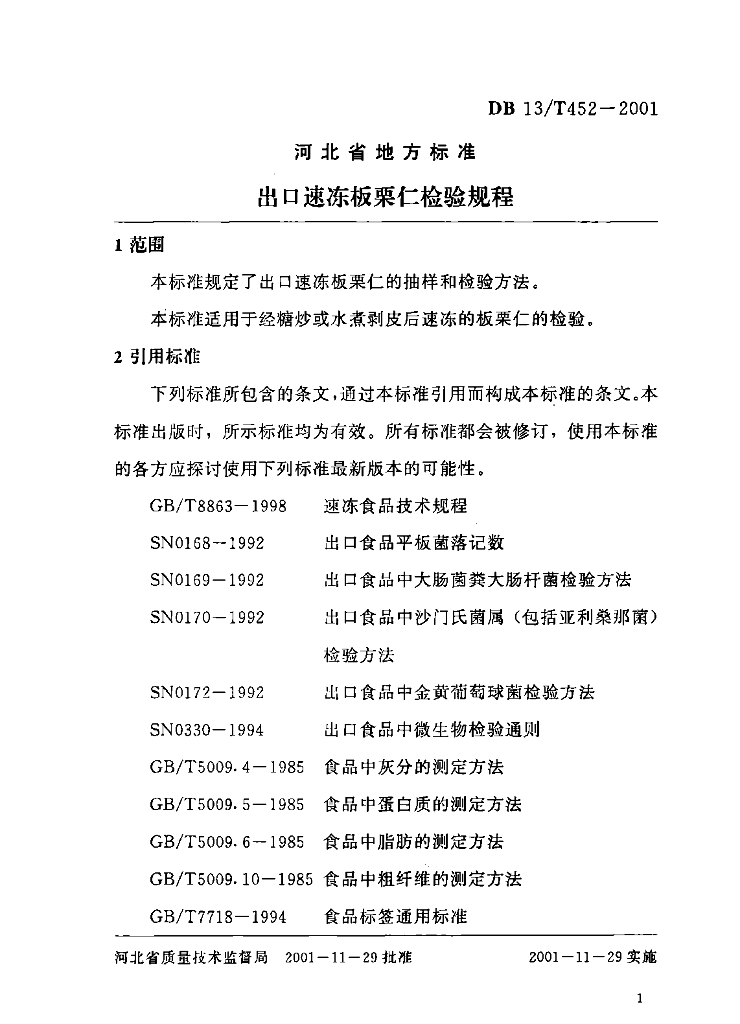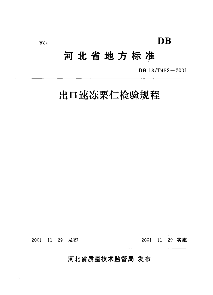 DB13/T 452-2001 出口速冻栗仁检验规程