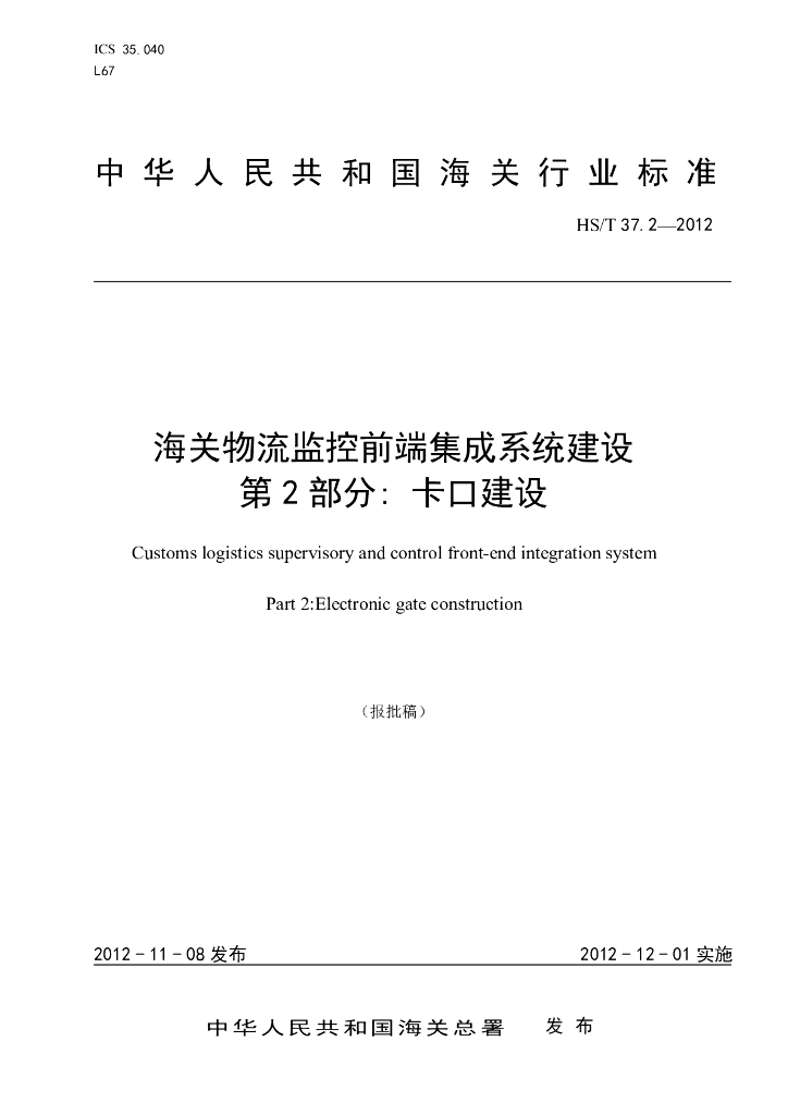 HS/T 37.2-2012 海关物流监控前端集成系统建设 第2部分:卡口建设(报批稿)