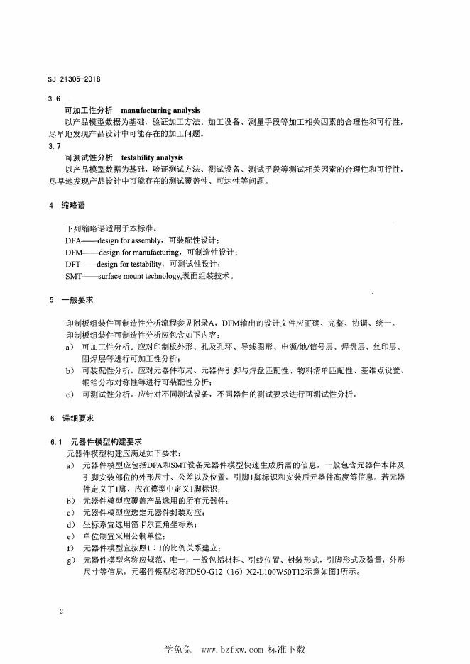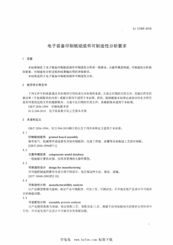 SJ 21305-2018 电子装备印制板组装件可制造性分析要求
