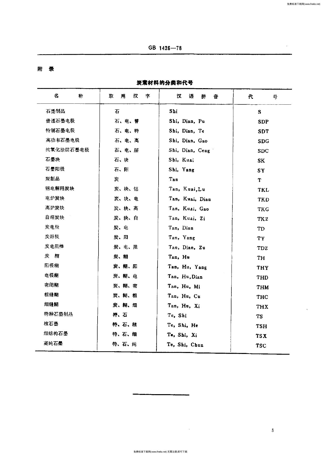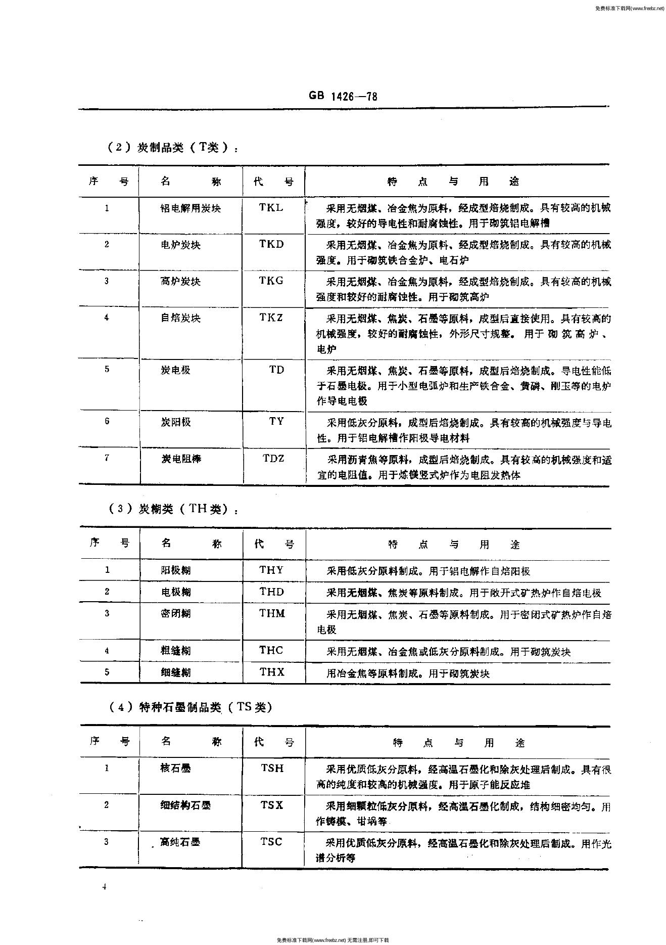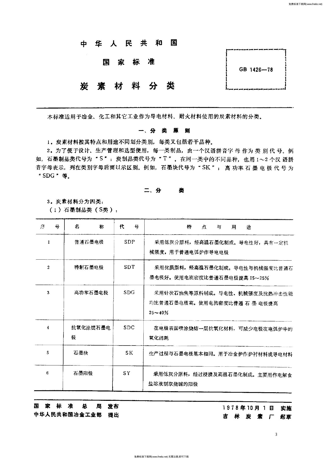 GB/T 1426-1978 炭素材料分类