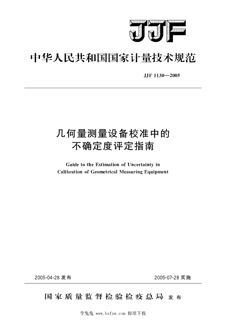JJF 1130-2005 几何量测量设备校准中的不确定度评定指南