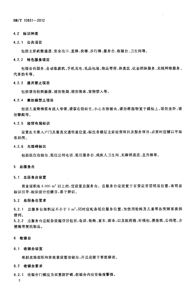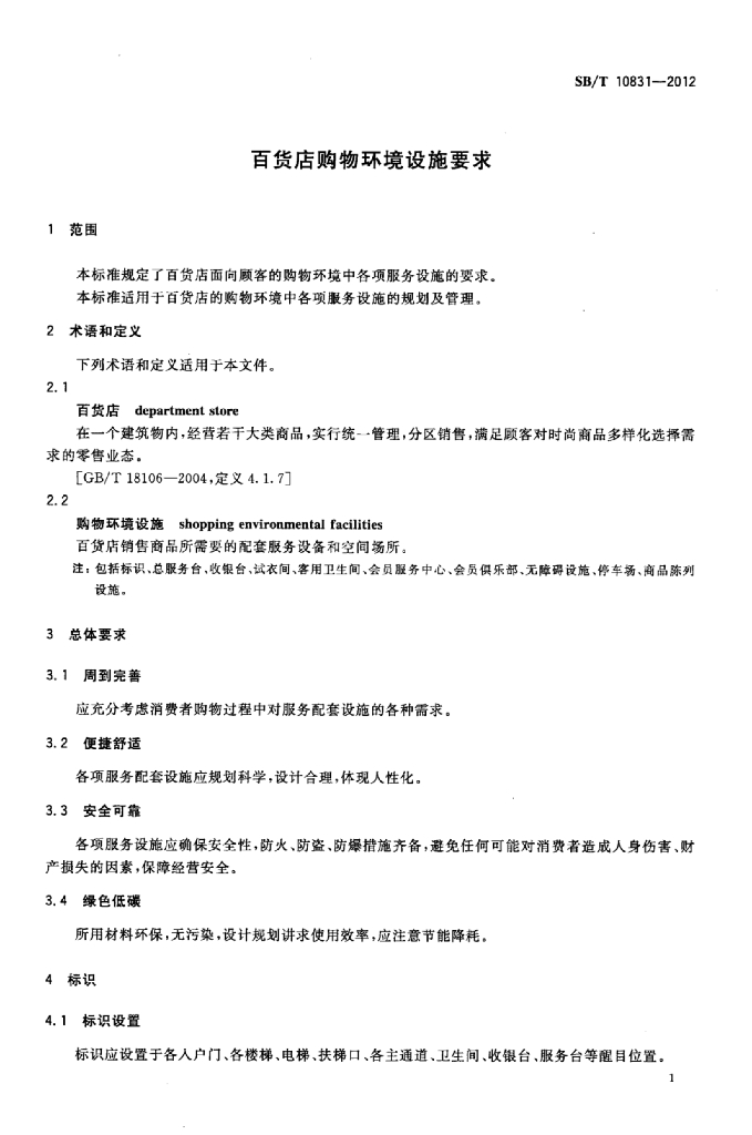 SB/T 10831-2012 百货店购物环境设施要求