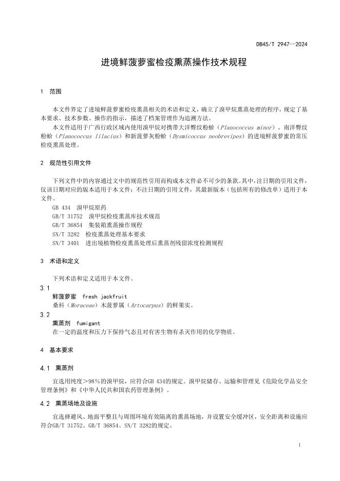 DB45/T 2947-2024 进境鲜菠萝蜜检疫熏蒸操作技术规程
