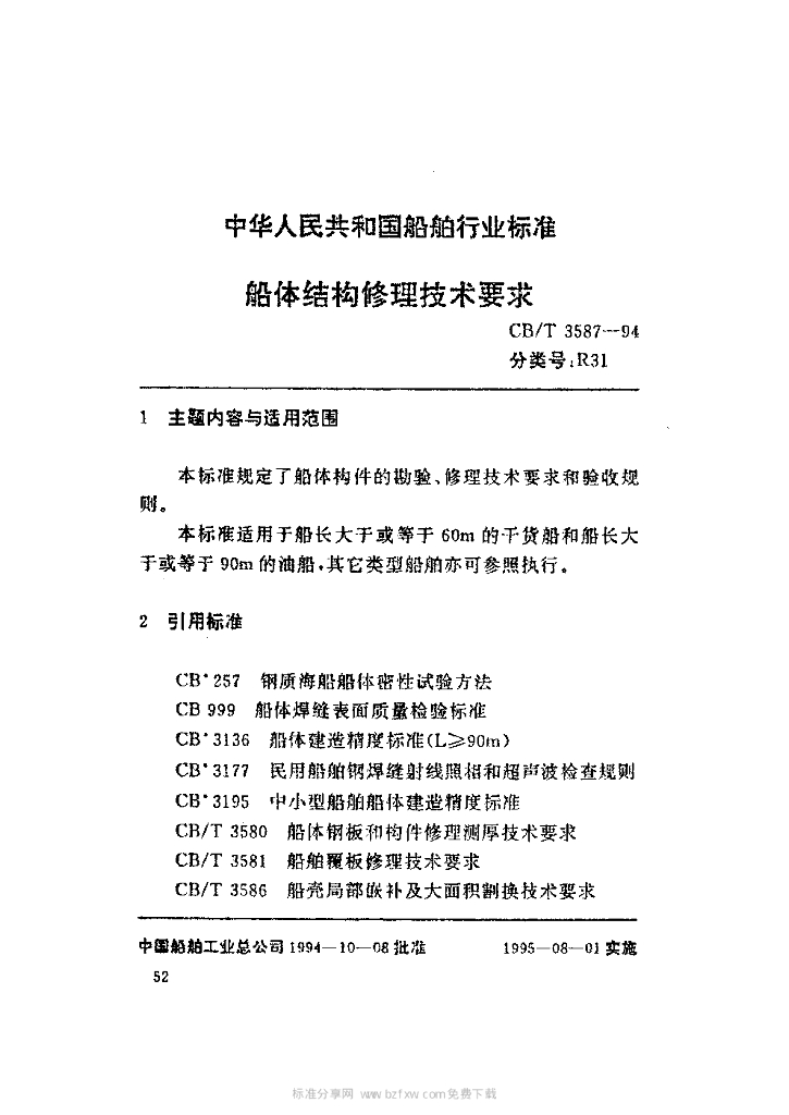 CB/T 3587-1994 船体结构修理技术要求
