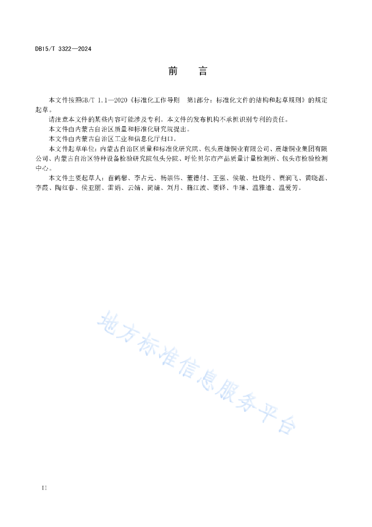内蒙古自治区质量和标准化研究院、包头震雄铜业有限公司、震雄铜业集团有限公司、内蒙古自治区特种设备检验研究院包头分院、呼伦贝尔市产品质量计量检测所、包头市检验检测中心