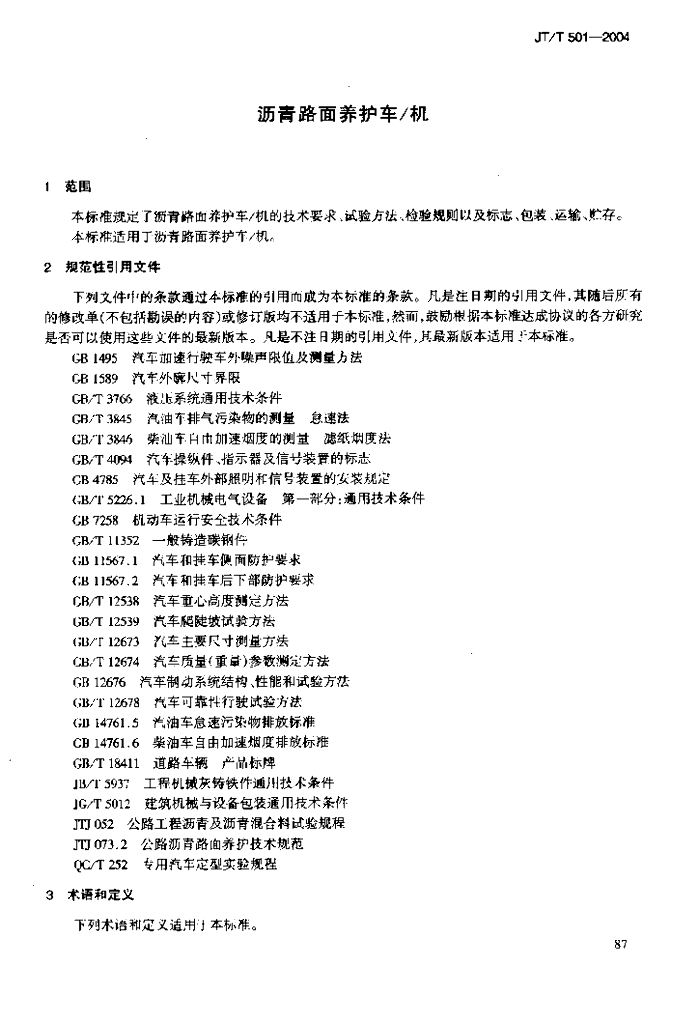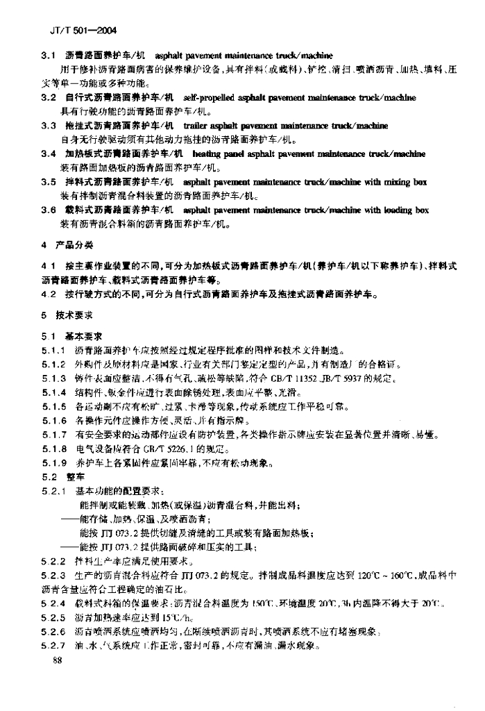 JT/T 501-2004 沥青路面养护车_机