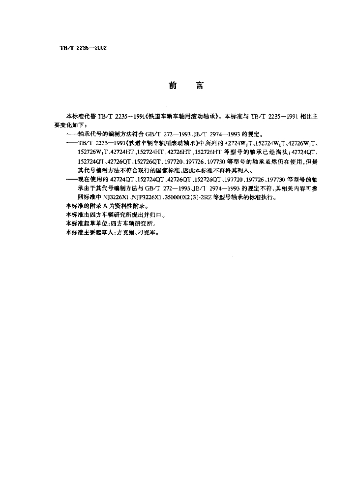 TB/T 2235-2002 铁道车辆滚动轴承技术条件