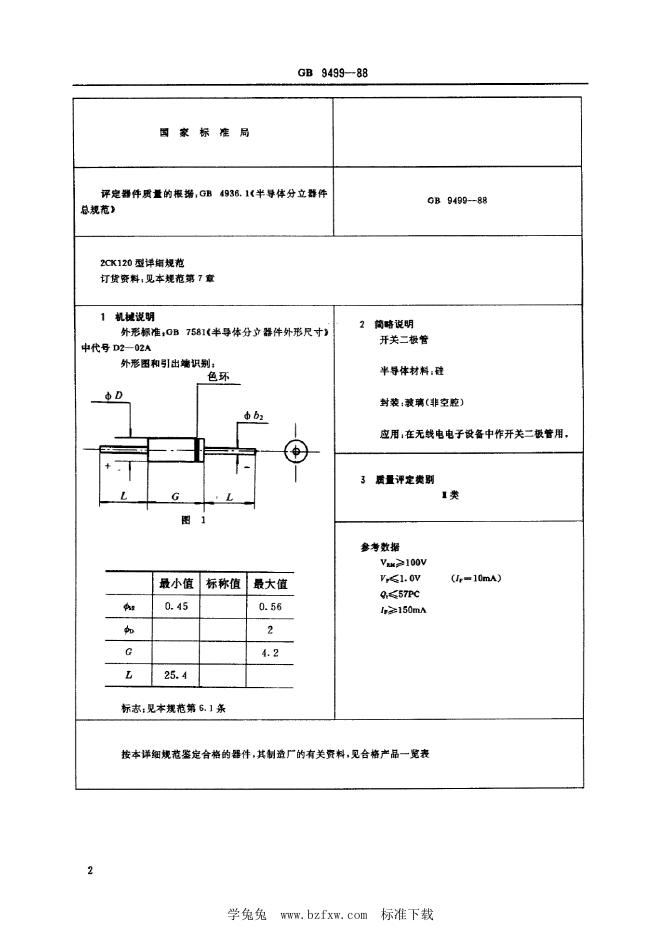 SJ/T 10954-1996 电子元器件详细规范 ZCK120型硅开关二极管(可供认证用)