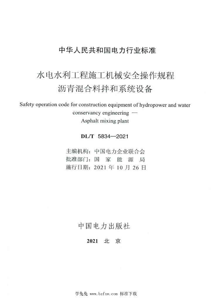 DL/T 5834-2021 水电水利工程施工机械安全操作规程沥青混合料拌和系统设备